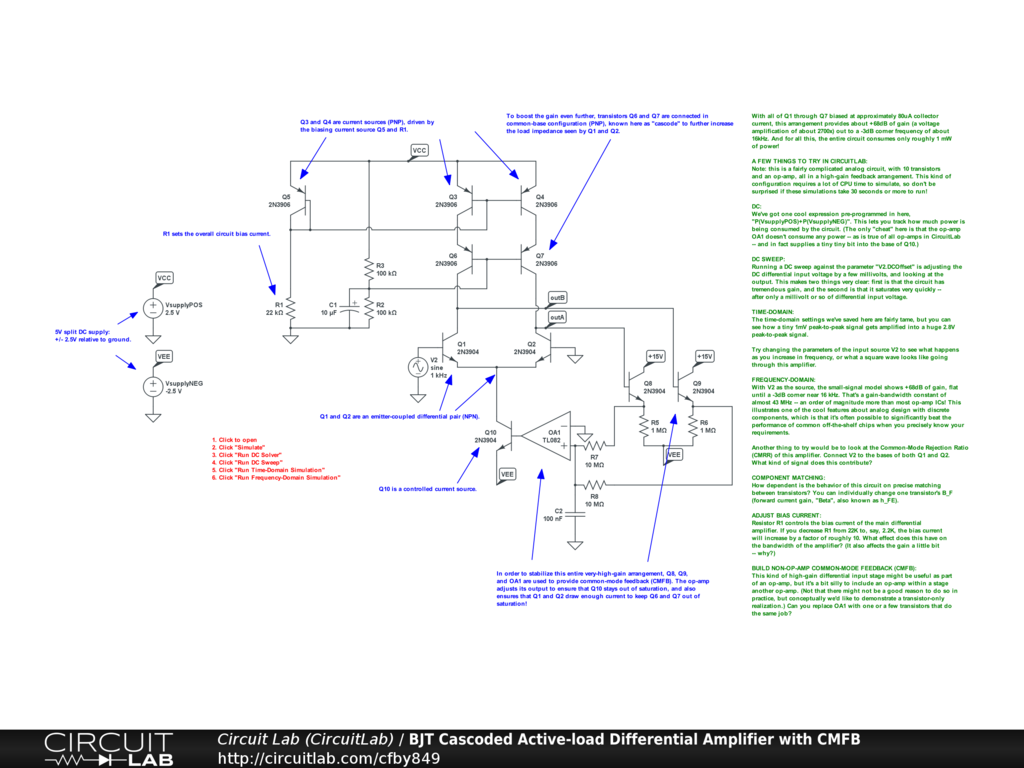 Bjt Cascoded Active Load Differential Amplifier With Cmfb Circuitlab